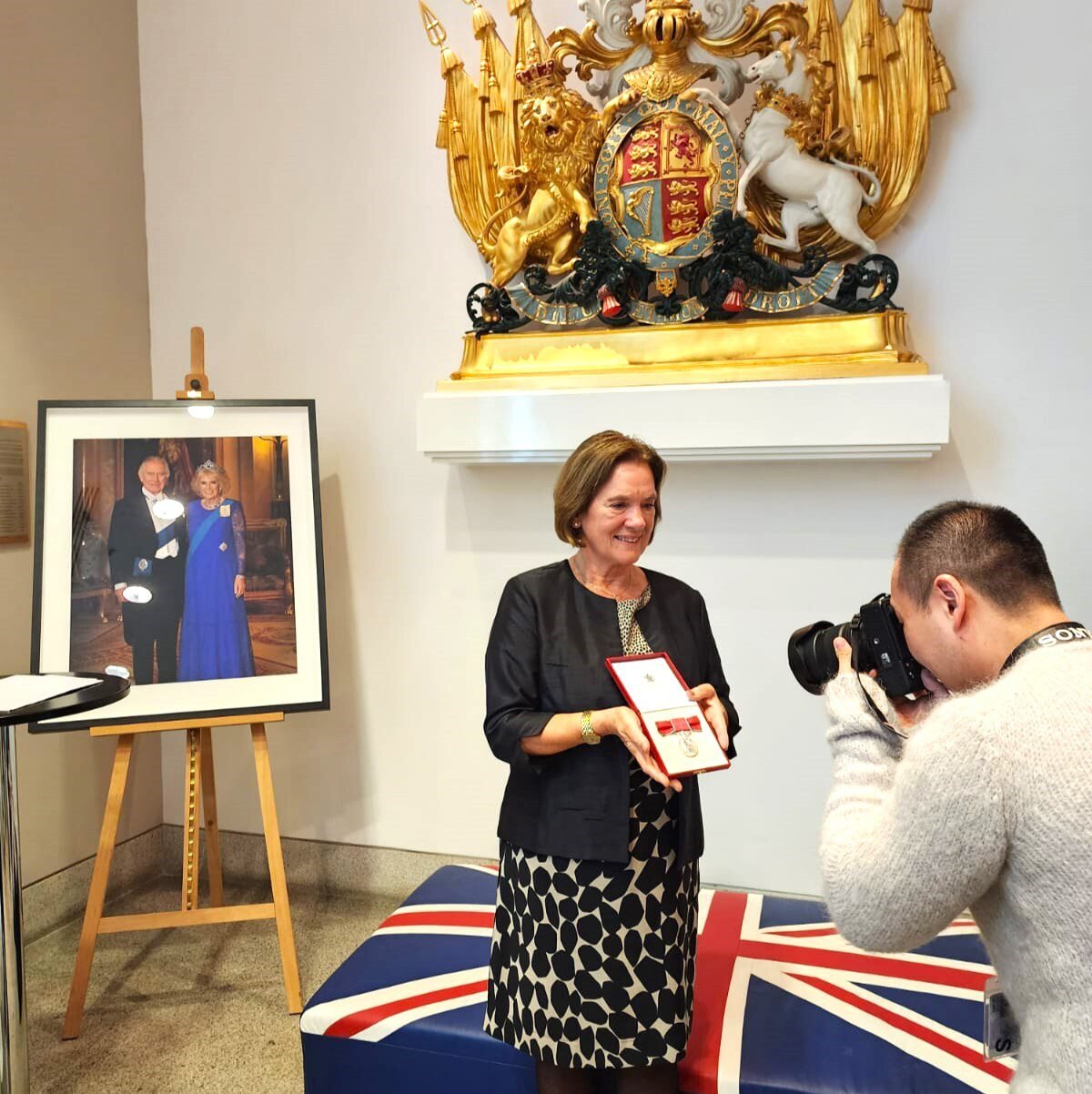 The British Empire Medal awarded by Consul General Brian Davidson is “for meritorious civil or military service worthy of recognition by the Crown”.