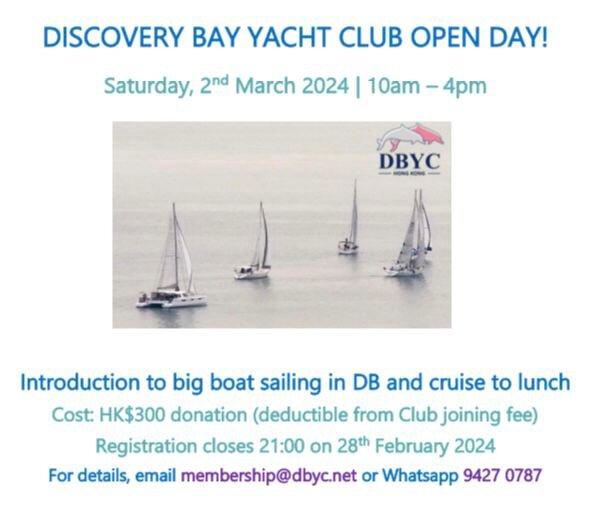 Discovery Bay Yacht Club (DBYC) Open Day will be held on 2nd March.