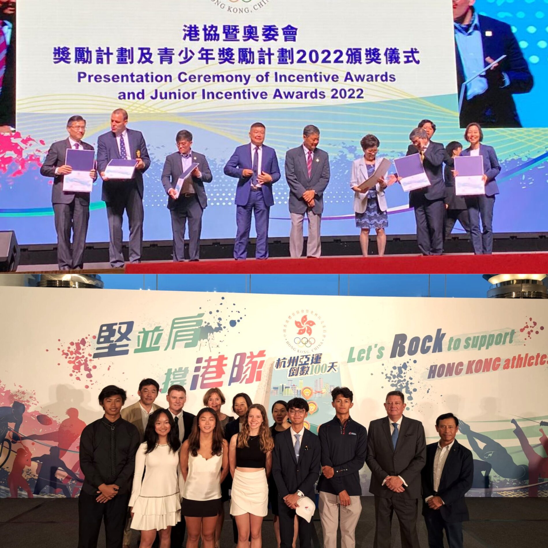 The SF&OC Incentive Awards and Junior Incentive Awards 2022 was held yesterday. Due to the great performance of our national sailing team, HKSF was awarded both an incentive award and a junior incentive award. HKSF president Meihan Cheung and our sailors were invited to attend the presentation ceremony. The following events were awarded in the following categories: