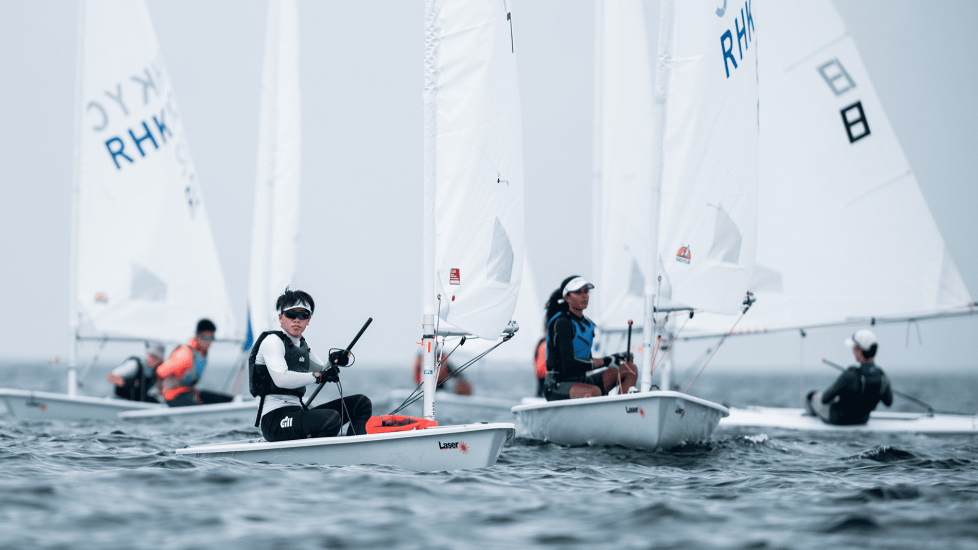 Three races were run for the 29er class and two races were run for the Laser Radial and Laser 4.7 classes before wind started to ease as forecasted. And a decision was made to call it a day at 2p.m. After the races on the first day, Casey Law and Jack Dingemans were leading in the class of 29er, with 13 year-old Peter Jessop being ahead of the rest in the class of Laser 4.7. The competition was much more intense within the class of Laser Radial, as Nicholas Bezy and Stan Picard were neck and neck in the races.